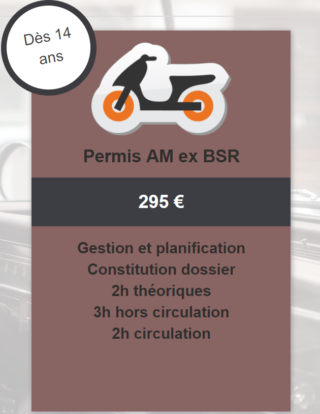 Le permis scooter (ou permis AM, anciennement BSR) s’adresse aux personnes sans permis née après le 31.12.1987 souhaitant conduire un deux roues de moins de 50 cm3.